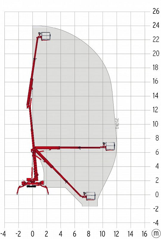 Only 98 cm passing width make access through single standard doors quick and easy. With 250 kg platform capacity in the entire working area the LEO24GT has an unrestricted outreach of 12,00 m. That is always enough capacity to take two persons including tools or material: No compromises and unrivalled in this height segment.