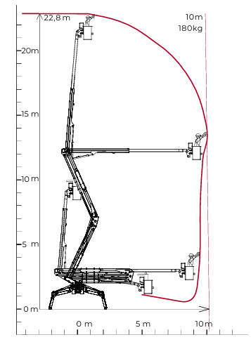Electrically isolated up to 46 kV, The CMC i23 is a double pantograph geometric platform with the largest unrestricted outreach in its class. With its 23-metre working height, three stabilisation areas and automatic stabiliser levelling, it can perform at its best in any conditions.
